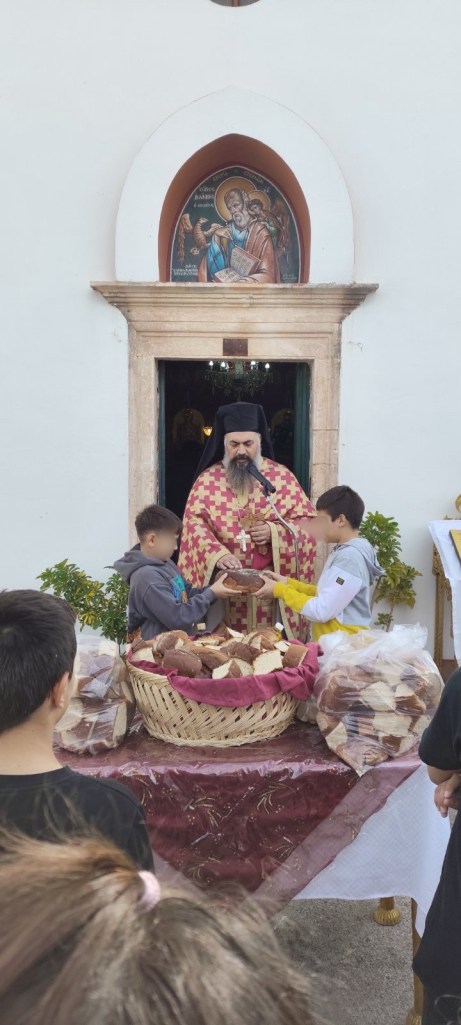 Την Ιερή Ακολουθία τέλεσε ο εφημέριος Αρχιμανδρίτης Οικουμενικού Θρόνου π. Μελχισεδέκ, με τη συμμετοχή των μαθητών του Δημοτικού Σχολείου, οι οποίοι έδωσαν μια ξεχωριστή, ζωντανή παρουσία στην εορταστική ημέρα.