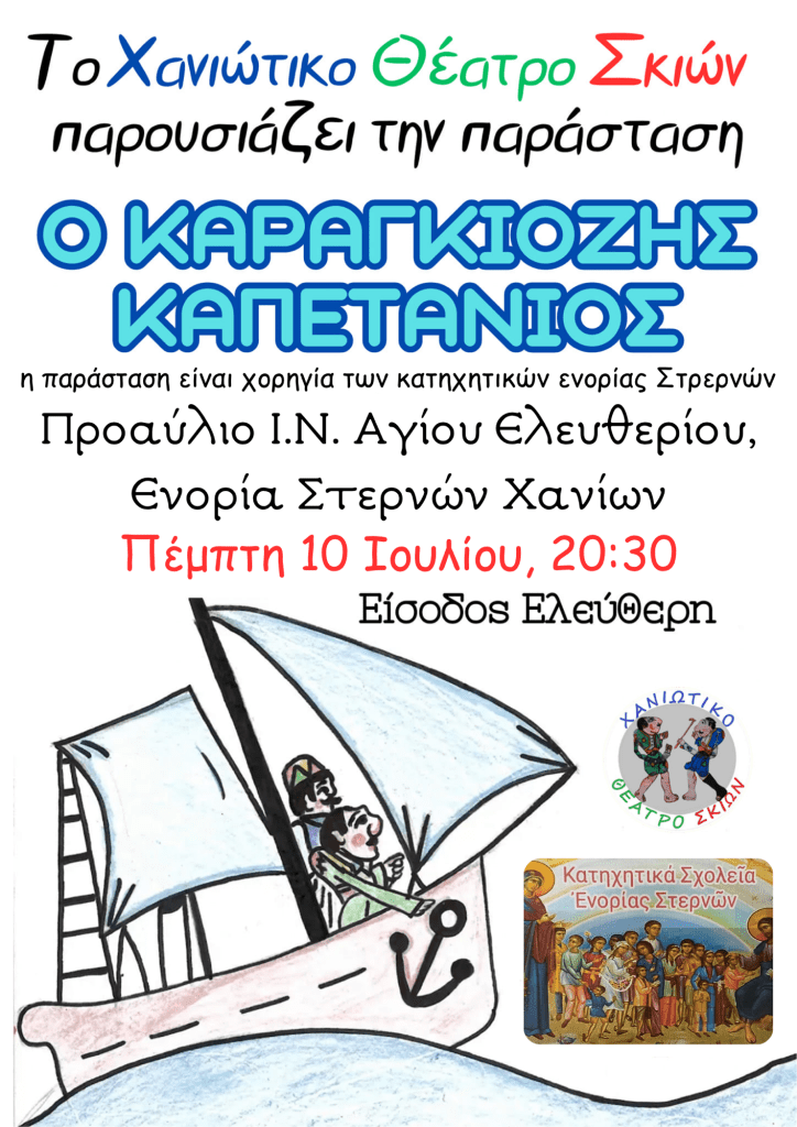 Ἰούνιος 30, 2025Ἰούλιος 1, 2025 ΕΝΟΡΙΑ ΣΤΕΡΝΩΝ ΧΑΝΙΑ Εκδήλωση Κατηχητικών Σχολείων Ενορίας Στερνών – Θέατρο Σκιών – Παράσταση του Χανιώτικου Θέατρο Σκιών Μοιρασθῆτε το: Share on X(Ἀνοίγει σὲ νέο παράθυρο) X Μοιρασθῆτε το στὸ Facebook(Ἀνοίγει σὲ νέο παράθυρο) Facebook Email a link to a friend(Ἀνοίγει σὲ νέο παράθυρο) Email Μοῦ ἀρέσει Φόρτωση σὲ ἐξέλιξη...