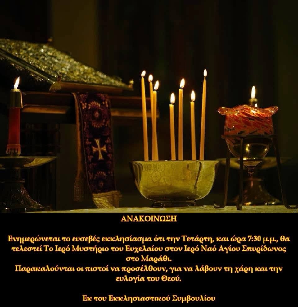 Αὔγουστος 11, 2025Αὔγουστος 11, 2025 ΕΝΟΡΙΑ ΣΤΕΡΝΩΝ ΧΑΝΙΑ Ιερο Ευχελαίο την Τετάρτη 13 Αυγούστου, στις 19:30 – στον Ι.Ν. του Αγίου Σπυρίδωνος στο Μαράθι Ανακοίνωση για την τέλεση Ιερού Ευχελαίου την Τετάρτη 13 Αυγούστου, στις 19:30 στον Ι.Ν. του Αγίου Σπυρίδωνος στο Μαράθι Μοιρασθῆτε το: Πατῆστε γιὰ νὰ μοιρασθῆτε στὸ X(Ἀνοίγει σὲ νέο παράθυρο) X Click to share on Facebook(Ἀνοίγει σὲ νέο παράθυρο) Facebook Πατῆστε γιὰ νὰ στείλετε τὸν σύνδεσμο σὲ ἕναν φίλο(Ἀνοίγει σὲ νέο παράθυρο) Email Μοῦ ἀρέσει Φόρτωση σὲ ἐξέλιξη...