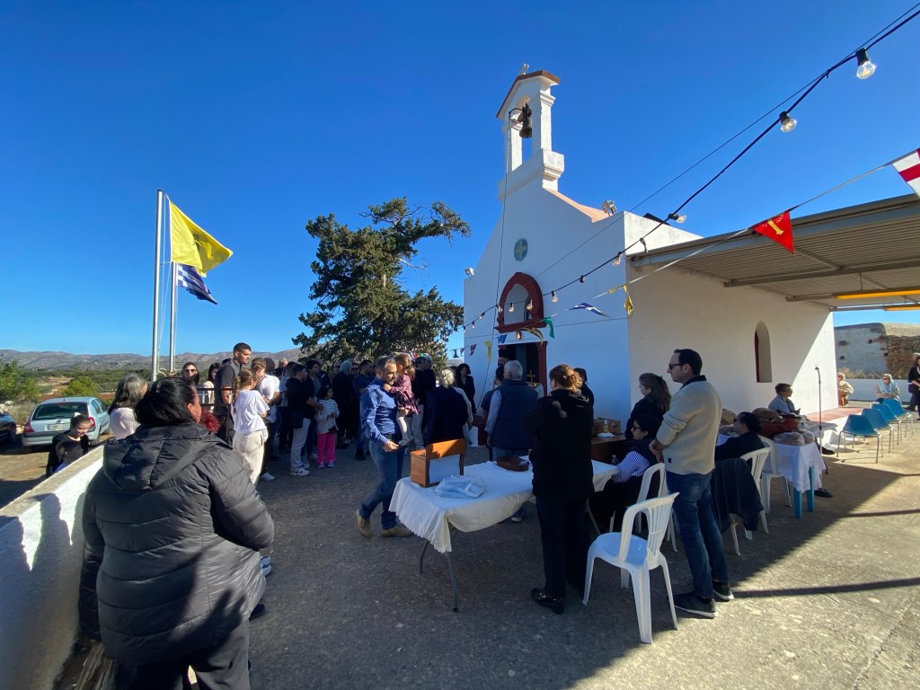 Ακολούθως, προσφέρθηκε πλούσιο κέρασμα με παραδοσιακά κρητικά εδέσματα, που επιμελήθηκαν ενορίτισσες με αγάπη και φροντίδα.