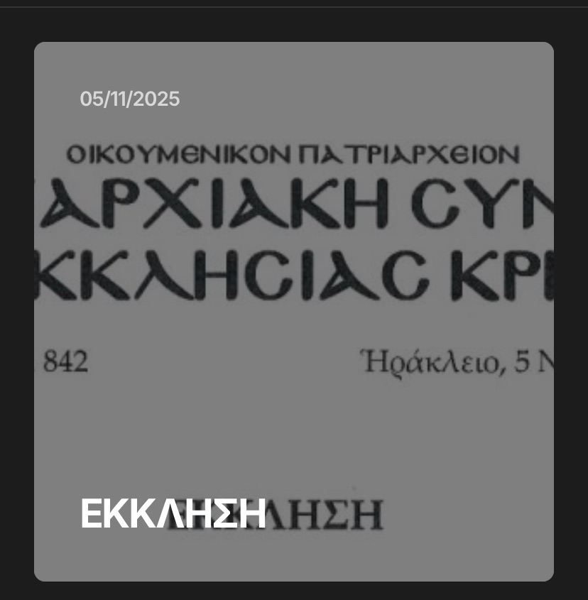 Ἡ Ἱερά Ἐπαρχιακή Σύνοδος τῆς Ἐκκλησίας Κρήτηςἐκφράζει τή θλίψη Της καί διερωτᾶται, ἐν μέσῳ ἑνός κοινωνικοῦ περιβάλλοντος βιαιοτήτων καί ἐκδηλώσεωνἐπιθετικότητας καί μίσους, ποῦ ὁδηγούμαστε; Ποιός εἶναι ὁ λόγος τῆς παρουσίας μιᾶς τέτοιας καταστάσεως στήΜεγαλόνησο, πού διακρίνεται γιά τή λεβεντιά καί τό ἦθος, τήν ἐντιμότητα καί τήν ἐργατικότητα, τήν τιμιότητα καί τό φιλότιμο τῶν ἀνθρώπων της;