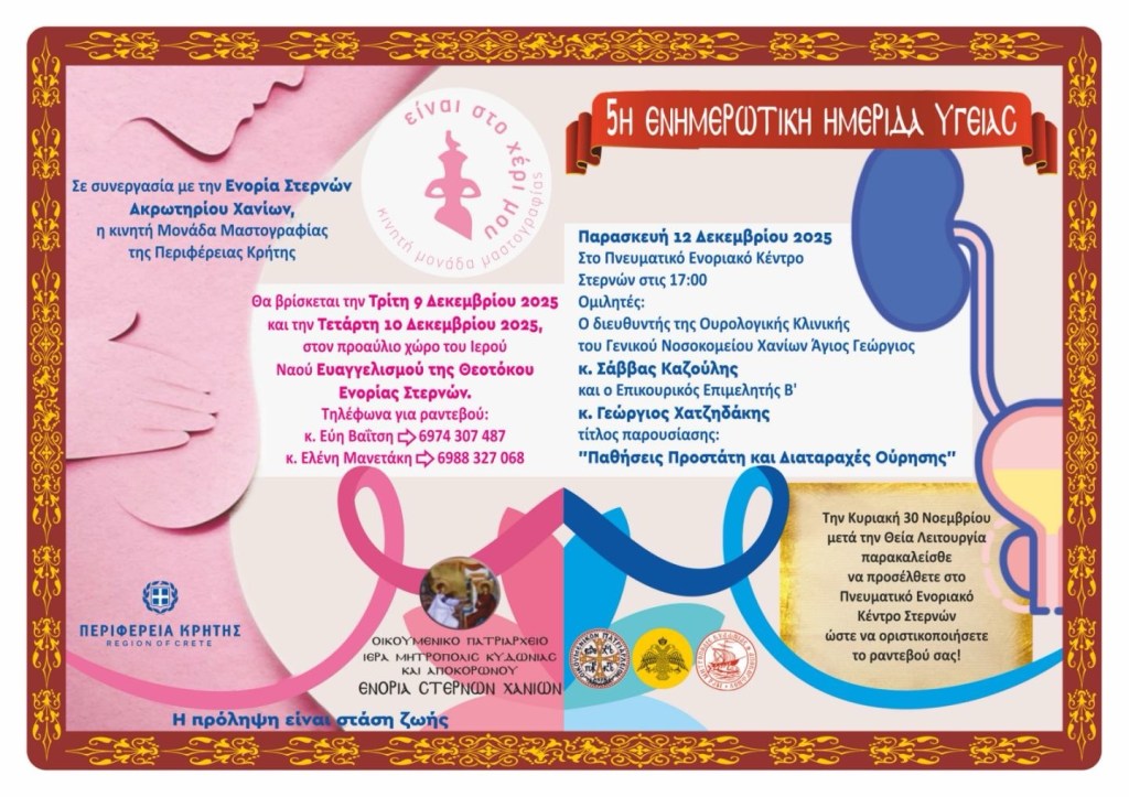 📣 5η Ενημερωτική Ημερίδα Υγείας στην Ενορία Στερνών