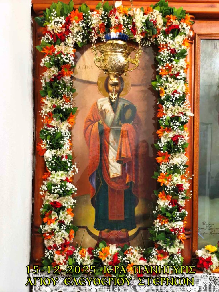 Με ιδιαίτερη κατάνυξη και τη συμμετοχή πλήθους πιστών ολοκληρώθηκε η πανήγυρη του Αγίου Ελευθερίου και της μητρός αυτού, Αγίας Ανθίας, στον Ιερό Ναό Αγίου Ελευθερίου Στερνών.