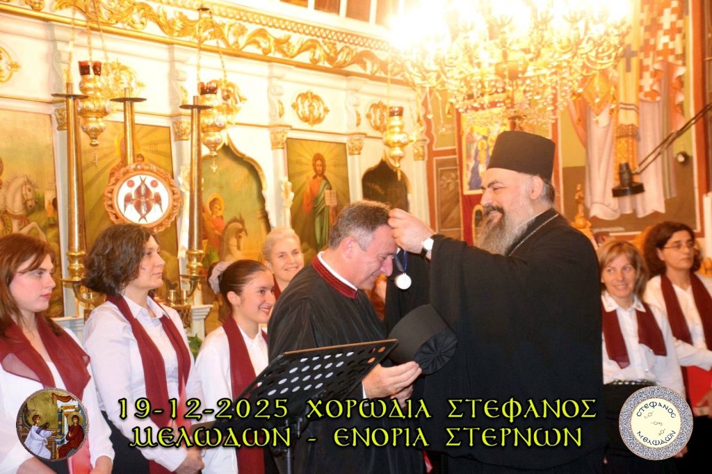 Τους ύμνους απέδωσαν με κατάνυξη και ακρίβεια τα γυναικεία και ανδρικά τμήματα του Βυζαντινού Χορού «Στέφανος Μελωδών». Την καλλιτεχνική διεύθυνση είχε ο Πρωτοψάλτης του Μητροπολιτικού Ναού Εισοδίων της Θεοτόκου Χανίων και Άρχων Υμνωδός της Μεγάλης του Χριστού Εκκλησίας, κ. Κωνσταντίνος Στεφανάκης, ο οποίος καθοδήγησε με μαεστρία τους ψάλτες και τις ψάλτριες, αναδεικνύοντας τη δύναμη και την πνευματικότητα των βυζαντινών ήχων.