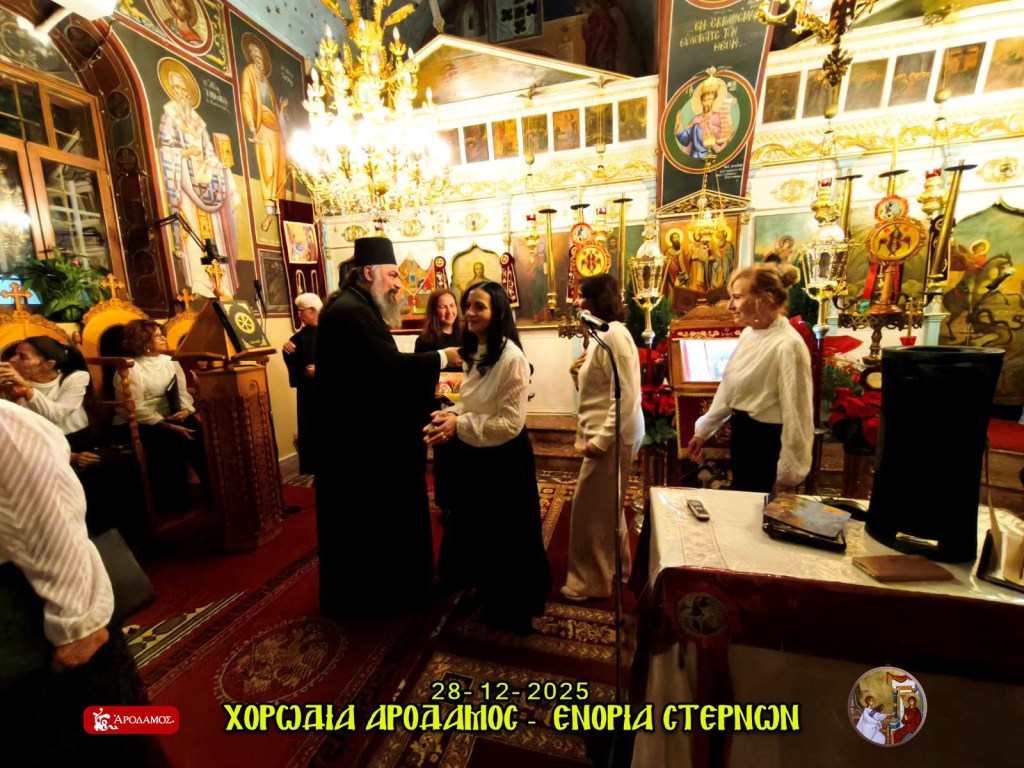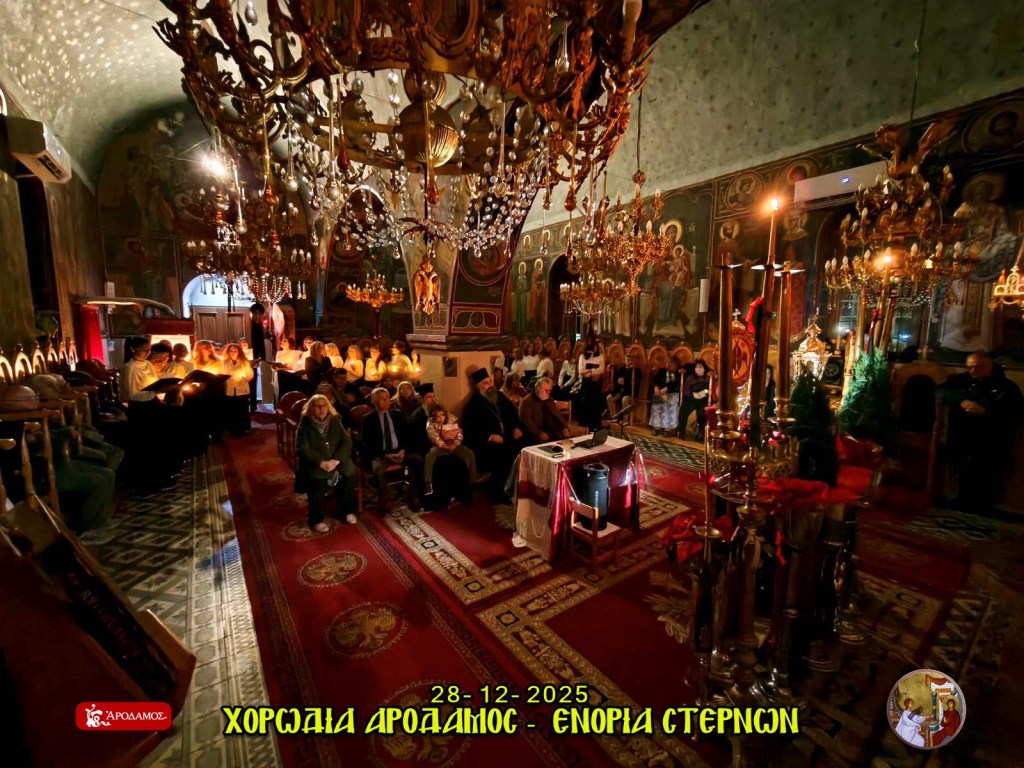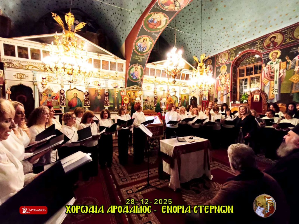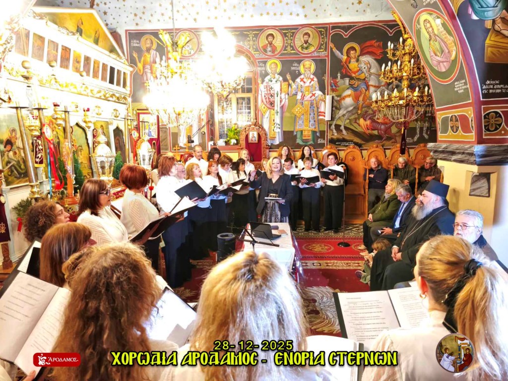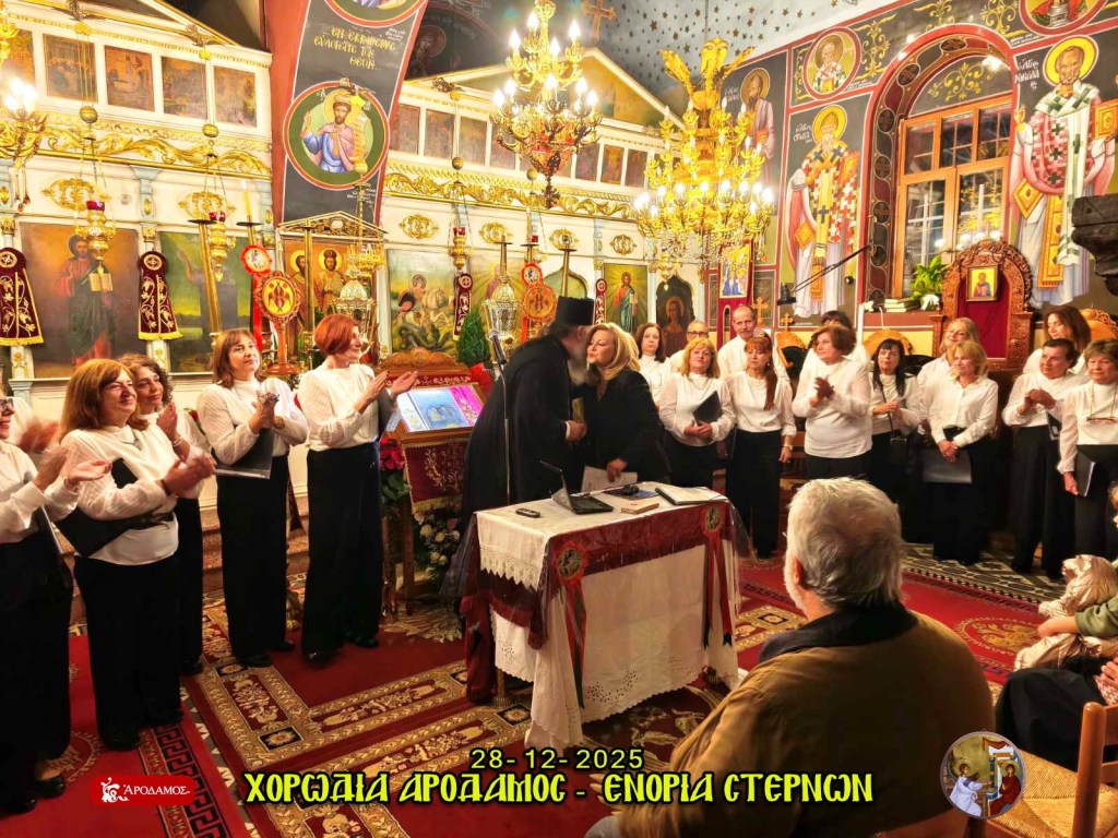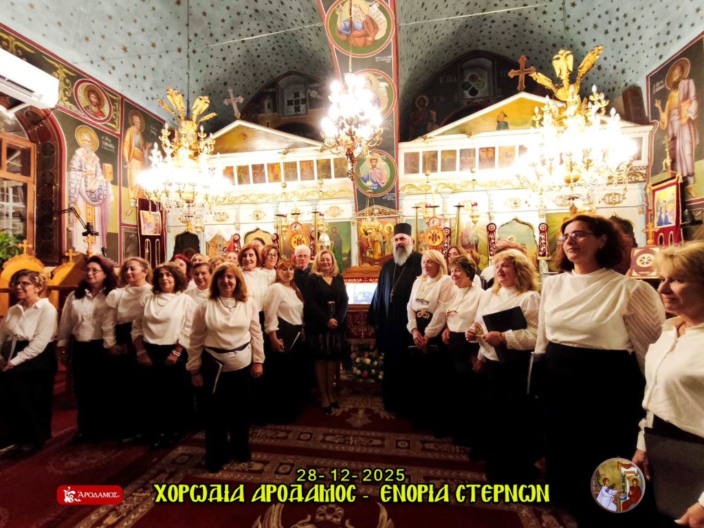Η Ενορία Ευαγγελισμού της Θεοτόκου Στερνών εκφράζει τις θερμές της ευχαριστίες προς τη χορωδία παραδοσιακής μουσικής «ΑΡΟΔΑΜΟΣ», η οποία πλαισίωσε με ξεχωριστό τρόπο την εορταστική εκδήλωση Βυζαντινής και Παραδοσιακής Μουσικήςπου πραγματοποιήθηκε την Κυριακή 28 Δεκεμβρίου 2025 στον Κεντρικό Ιερό Ναό της Ενορίας μας.