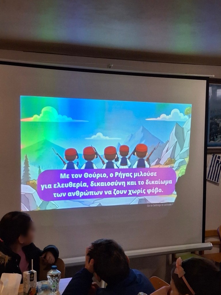 Σήμερα Κυριακή της Ορθοδοξίας ολα τα παιδιά παρακολούθησαν την Θεία Λειτουργία και στη συνέχεια είχαμε την χαρά ο υπεύθυνος των Κατηχητικών Σχολείων κ. Δημήτρης Βλαντής να μιλήσει στα παιδιά για την επερχόμενη επέτειο της 25ης Μαρτίου, τον Θούριο του Ρήγα και την ζωή των Ελλήνων τα χρόνια εκείνα!