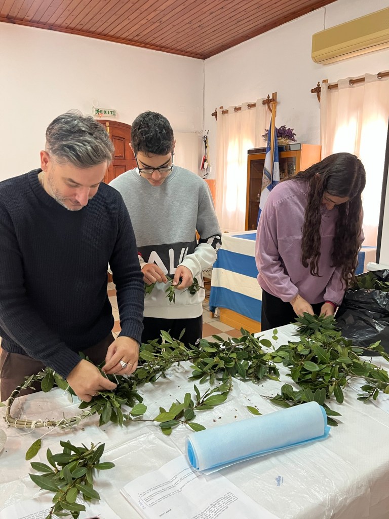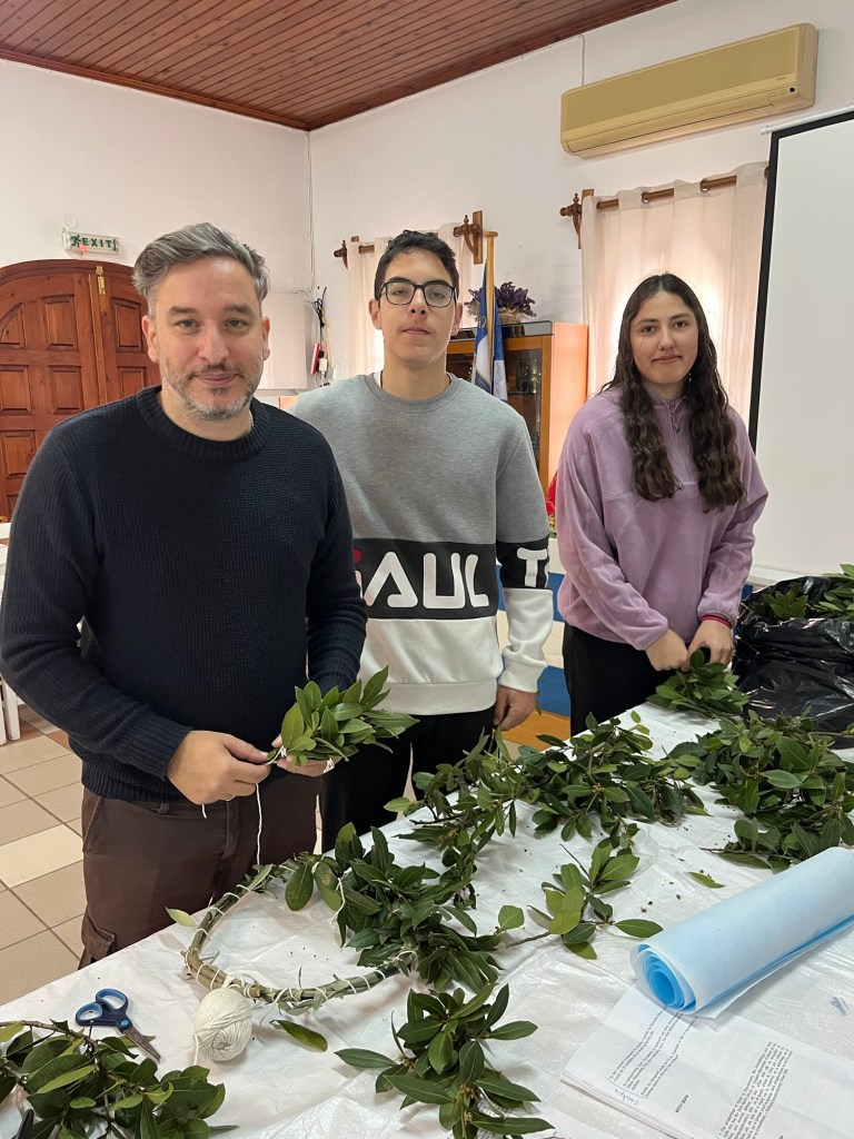 Σήμερα κάναμε την τελευταία πρόβα για την εορτή της 25ης Μαρτίου και κατασκευάσαμε με τα παιδιά το στεφάνι για την κατάθεση ανήμερα της Εορτής στο μνημείο πεσόντων .
